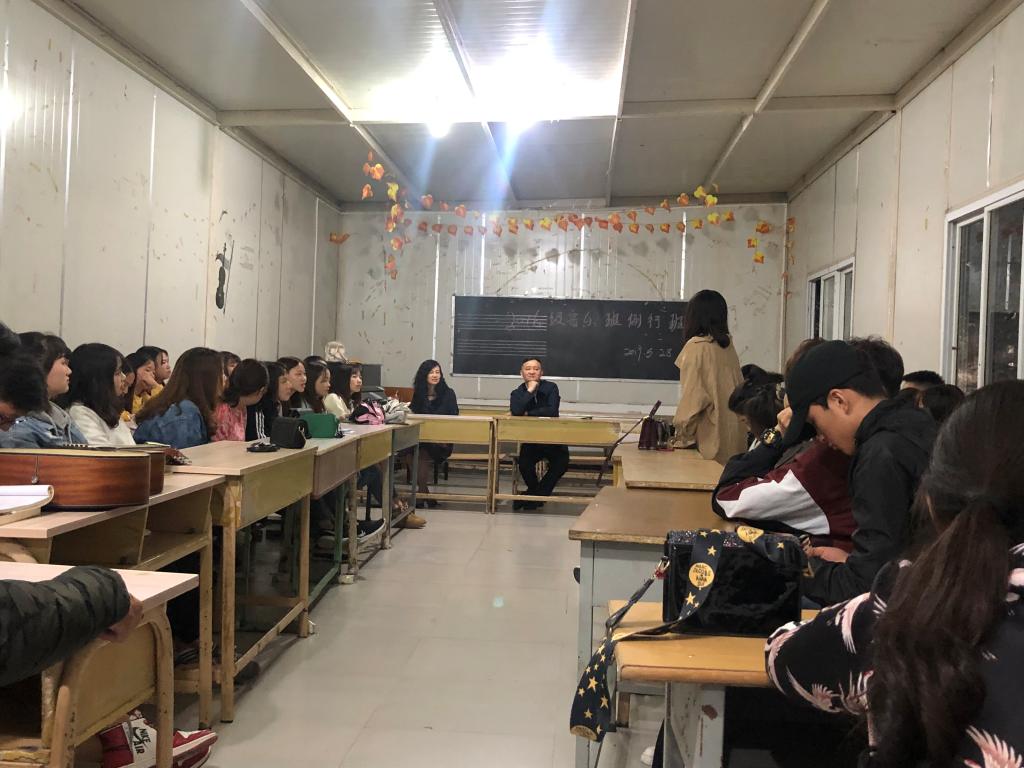 吴次南校长(中)作为艺术学院2016级音乐学班班级导师参加该班班会