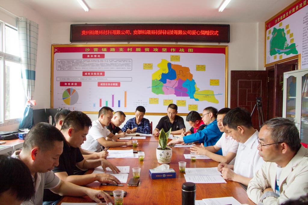 捐赠仪式上,沙营镇党委书记杨秀云介绍了脱贫攻坚工作情况。自脱贫攻坚启动以来,沙营镇党委、政府始终坚持以高度的政治责任感和使命感,全力推进脱贫攻坚各项工作,贫困群众生活水平、幸福指数大幅度提升,但由于沙营镇贫困人口面大量广,仍有少部分贫困村存在着生产生活水平困难、经济收入较低和产业发展资金不足的情况,尤其是路支村等槽子四村,地理环境恶劣,困难尤为突出。贵州柏晟林材料有限公司、安徽柏晟新材料科技有限公司的爱心捐赠,对路支村产业发展来说,就是雨中送伞、雪中送炭,一定会把捐赠资金落实到实处,决不辜负爱心企业的善行义举和拳拳爱心。