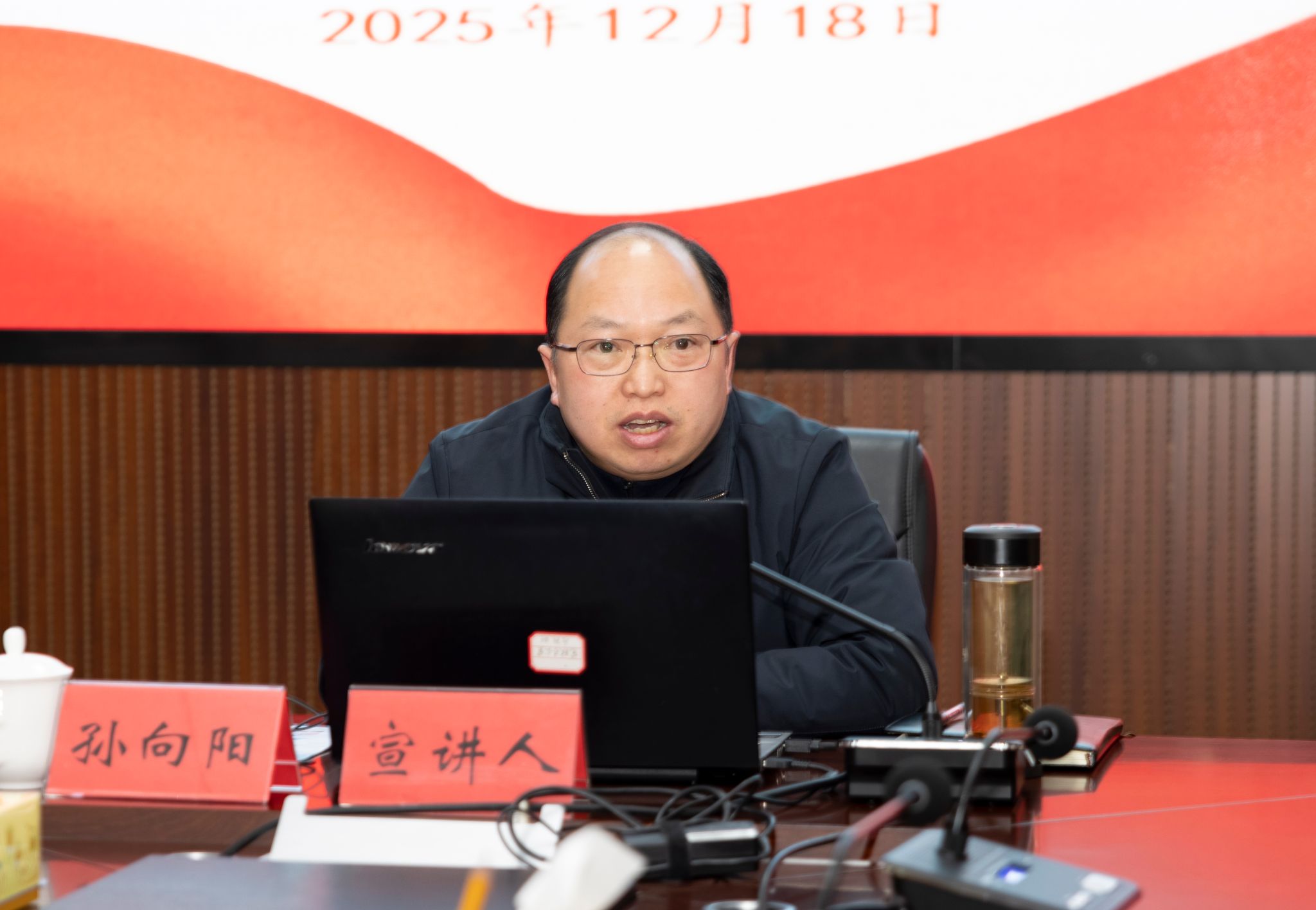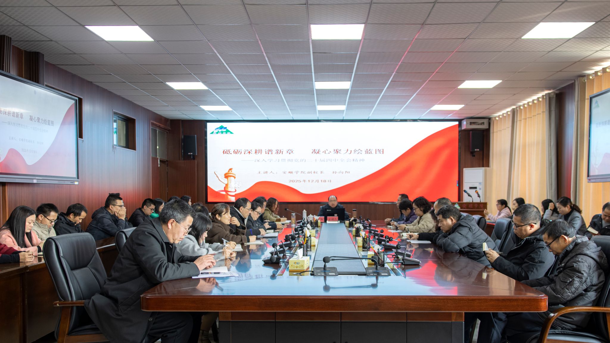 2025年12月18日下午,安顺学院党委常委、副校长孙向阳在安顺学院安道楼五楼505会议室为数理学院教师宣讲党的二十届四中全会精神和省委十三届八次全会精神。