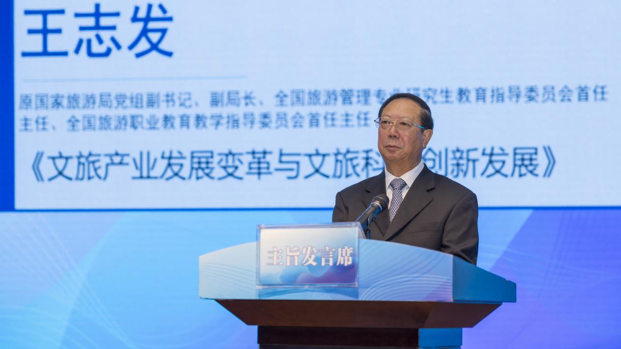 原国家旅游局党组副书记、副局长、全国旅游管理专业研究生教育指导委员会首任主任、全国旅游职业教育教学指导委员会首任主任王志发作主旨发言