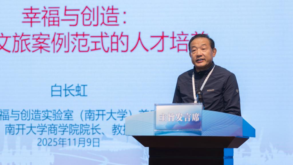 国务院学位委员会工商管理学科评议组成员、全国旅游管理专业研究生教育指导委员会副主任、南开大学商学院院长、南开管理评论主编、南开大学现代旅游业发展省部共建协同创新中心联合主任、教授、博导白长虹作主旨发言