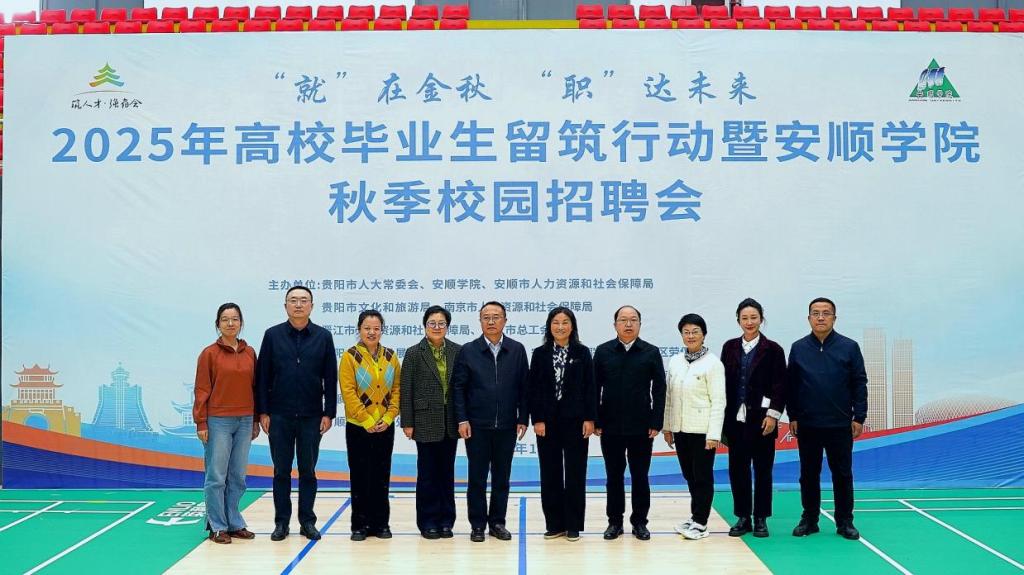 2025年10月28日,安顺学院隆重举办了主题为“‘就’在金秋 ‘职’达未来”的2025年高校毕业生留筑行动暨安顺学院秋季校园招聘会。本次招聘会由贵阳市人大常委会、安顺学院、安顺市人力资源和社会保障局、南京市人力资源和社会保障局、晋江市人力资源和社会保障局联合主办。活动当天,贵阳市人大常委会党组成员、副主任王启云,安顺学院院长曾丽,安顺学院党委常委、副校长孙向阳出席招聘会现场,并与用人企业、求职学生深入交流,详细了解企业招聘情况和学生应聘需求。